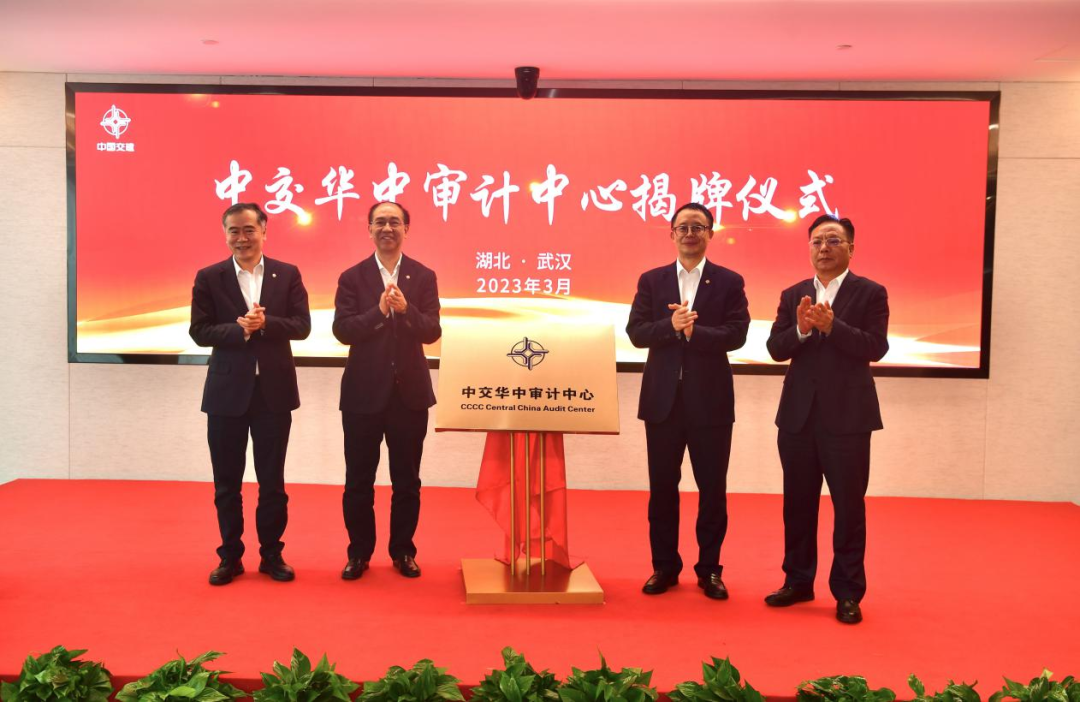 3月22日,中交华中审计中心揭牌仪式在武汉举行。中交集团党委副书记、总经理王海怀,党委常委、总会计师彭碧宏;中国交建党委委员、副总裁李茂惠,党委委员、财务总监朱宏标出席仪式。
