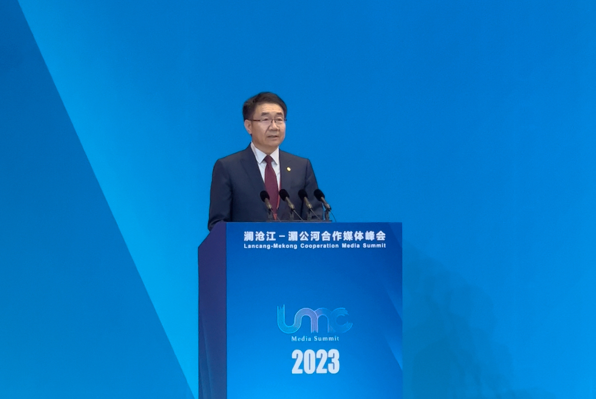 6月27日,2023澜沧江-湄公河合作媒体峰会在北京举行。中共中央政治局委员、中宣部部长李书磊出席并致辞。来自澜湄六国有关部门及主流媒体的130余位代表与会。受中交集团党委书记、董事长王彤宙委托,中交集团党委副书记、董事刘翔作为唯一企业代表参会并作主旨演讲。