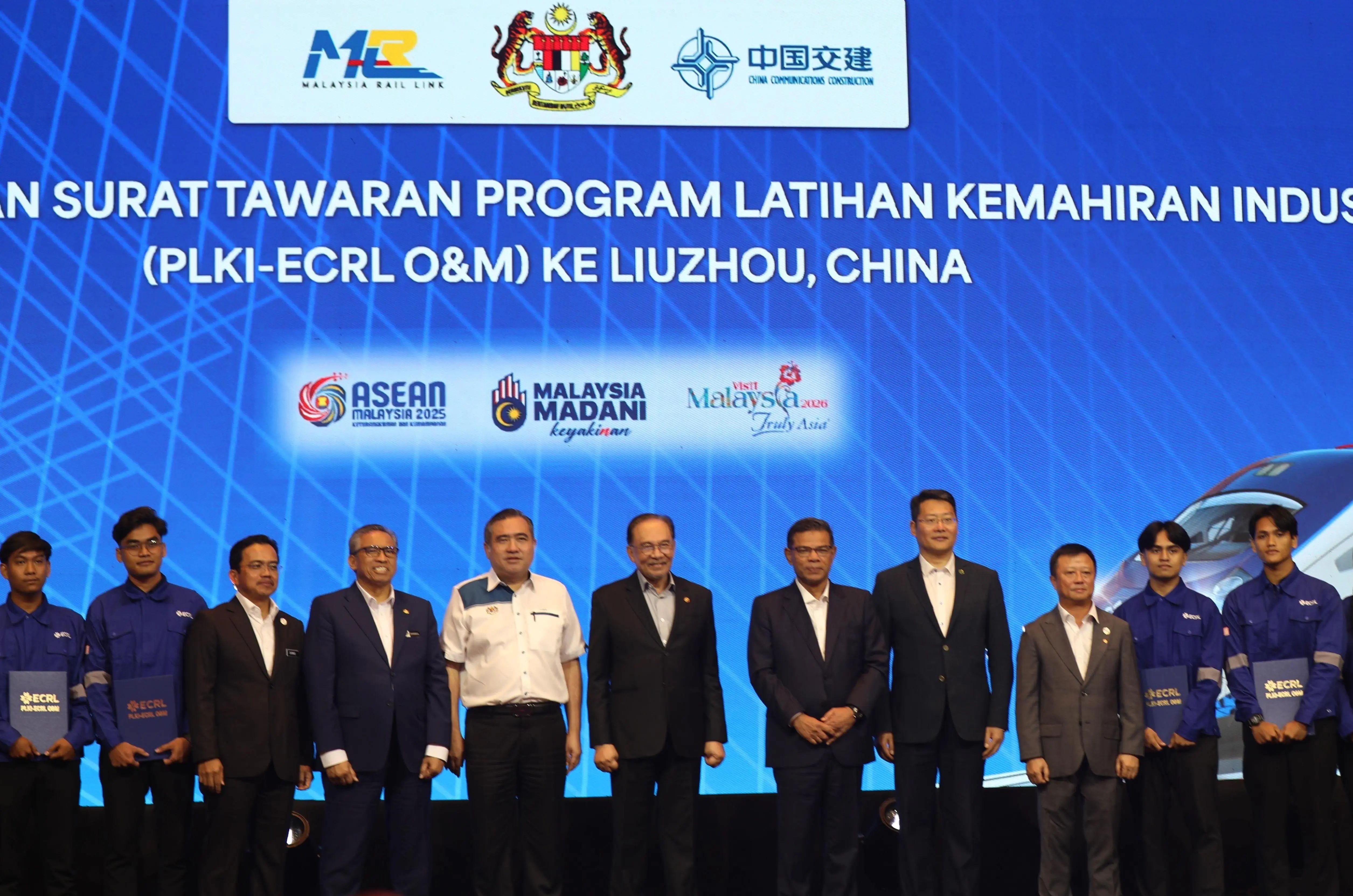 安瓦尔在致辞中指出,马来西亚东海岸铁路作为马中共建“一带一路”旗舰项目,不仅是现代、先进和快捷的运输系统,更将成为沿线地区开拓新增长领域的催化剂,必将成为共建高水平战略性马中命运共同体的合作典范。通过“中马铁路人才培训计划”,马来西亚青年人才将系统掌握铁路行业理论知识与实操技能,在完成培训考核后可优先获得就业机会,开辟更宽广、更稳定的职业发展通道。