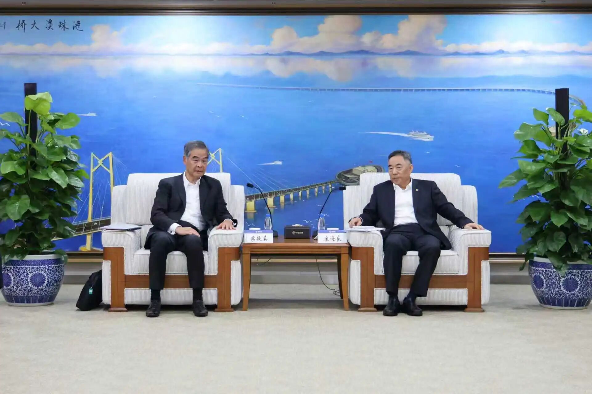 9月29日,全国政协副主席、共享基金会主席梁振英一行到中交集团调研,与中交集团党委书记、董事长宋海良进行座谈交流。