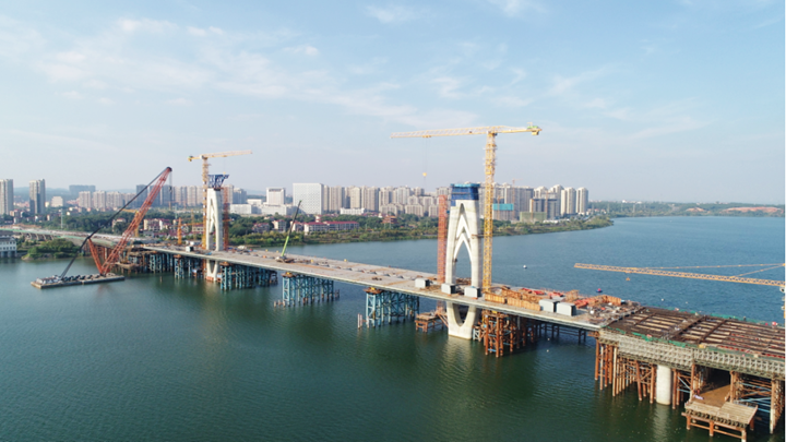 近日,二航局承建的江西泰和县澄江大桥项目主塔全部封顶。该项目位于吉安市,全长1.75公里,其中桥梁全长1.31公里,主桥为双塔自锚式悬索桥,主跨210米。该项目建成后,将缩短泰和县城区与周边5个乡镇的距离,助力泰和县“一江两岸”发展。