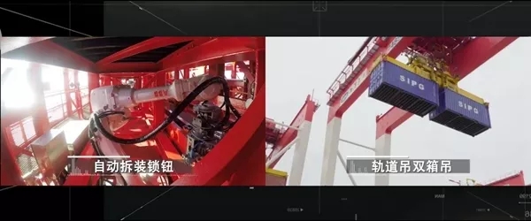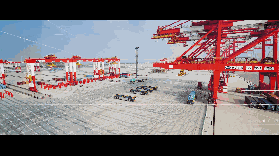 从集装箱离开货轮的那一刻起,10台桥吊、40台轨道吊、50辆AGV自动导航卡车同步启动。